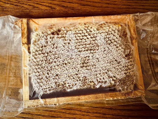 Das Wachs kann gekaut werden damit sich der Honig herauslöst, danach kann