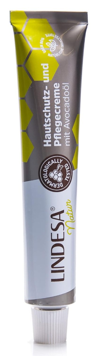 Die LINDESA Natur Pflegecreme ist eine rein natürliche Handschutz- und Pflegecreme mit Bienenwachs und Avocadoöl. Die Kombination aus rein natürlichen Inhaltsstoffen mit schützendem Bienenwachs, pflegendem Avocadoöl und beruhigendem Lavendelöl schützt und pflegt die Hände. Die Creme zieht schnell ein, ohne nachhaltig zu fetten oder das Tastgefühl zu beeinträchtigen. Die LINDESA Natur Pflegecreme stärkt die Abwehrfunktion der Haut, beugt Hautschädigungen durch äußere Belastungen vor und wirkt normalisierend auf gereizte Hautpartien